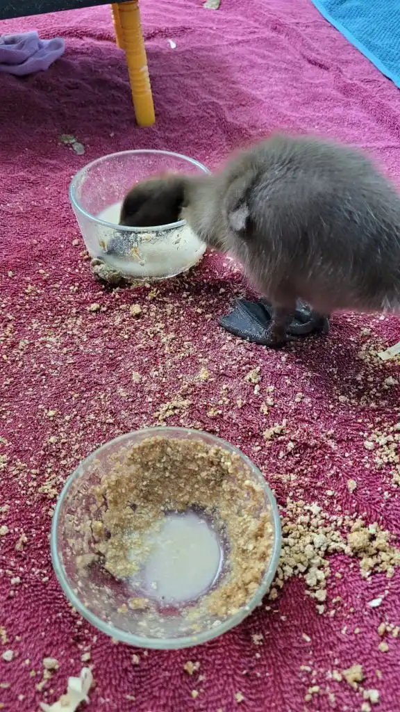 Ducks need commercial food that is made specifically for ducks. Chicken or other poultry food will not give them the necessary nutrients. In addition, they should get fresh food in the form of veggies and fruits. You may also want some treats for them, such as mealworms or grubs.