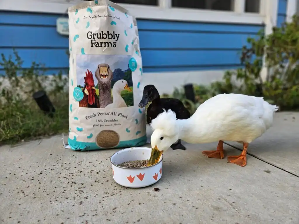 Recently, we introduced Grubbly Farms into our rotation. This new addition has been a fresh option for our ducks, adding another layer to their diet. We especially like that their protein source is from grubs and that they use all-natural ingredients.