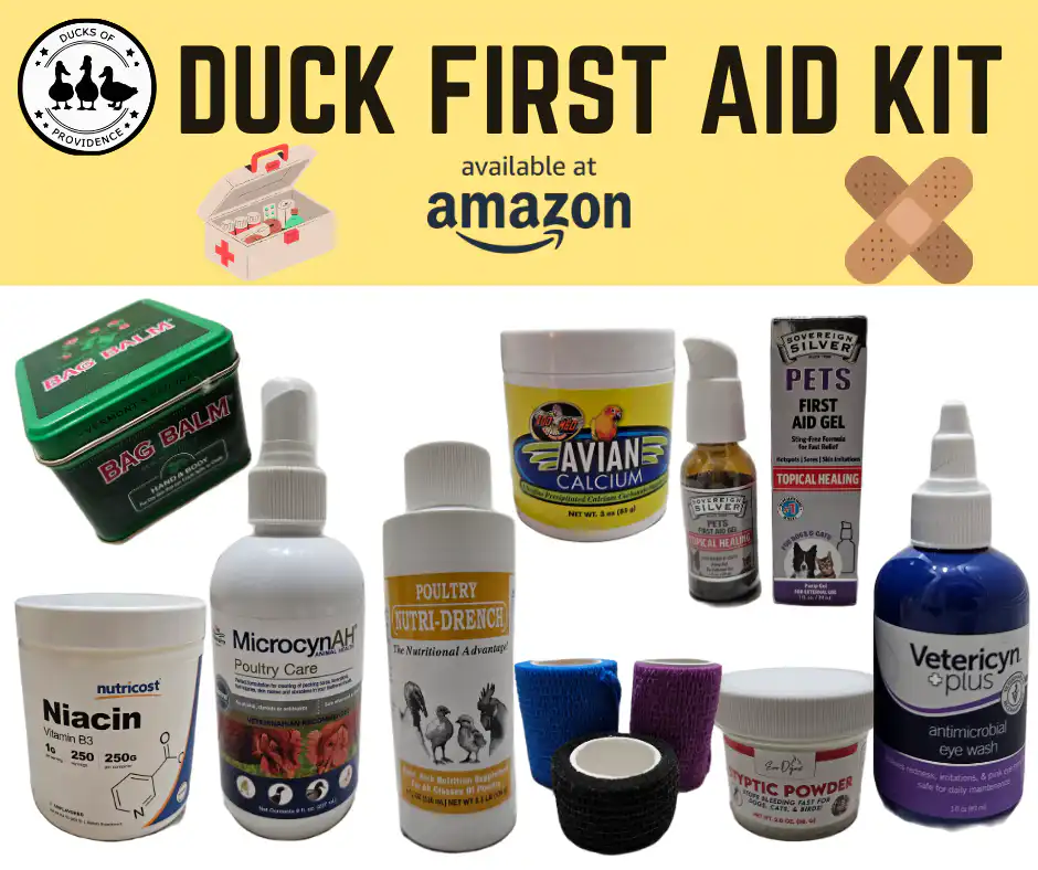 Check out our complete DIY Duck First Aid Kit checklist or our curated Amazon shopping list.