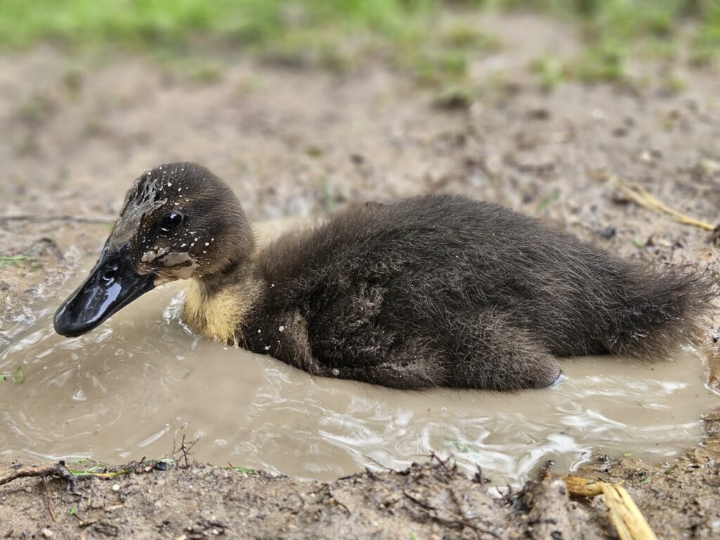 Schnatterinchen, on the other hand, has a special talent for mud. She especially loves sifting through muddy areas, working her bill through the water and soil with complete focus. Honestly, all of them enjoy it. If there is a muddy puddle anywhere in the yard, it immediately becomes the most popular spot.