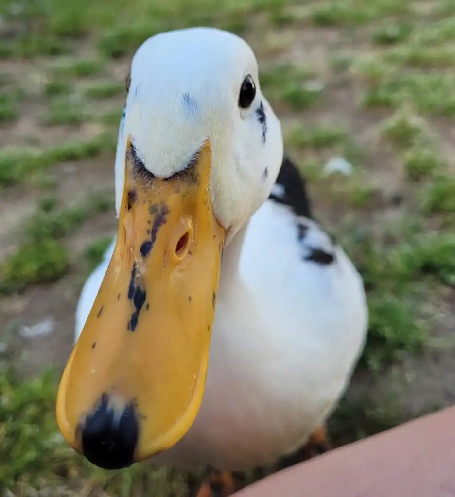 She was an Ancona duck, a rare, mid-size breed known for its striking black-and-white patterning. Penny wore her markings proudly, not just on her feathers, but also on her beak and feet, each one uniquely speckled. Anconas are often described as dual-purpose ducks, valued for eggs and meat, but Penny was never anything but a pet. A deeply loved one. No exceptions.