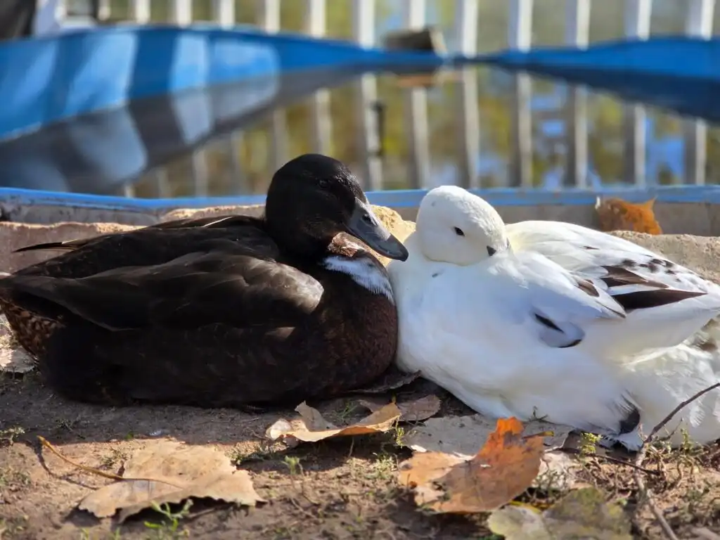 Simon was her anchor. They survived abandonment together as ducklings, and that shared beginning shaped their bond forever. They sought each other out instinctively, resting side by side and moving through the yard as a quiet pair. Penny was also very close to Ronja and Krümel. As one of the smaller ducks in the flock, she gravitated toward them, and there was a clear sense of belonging among them.