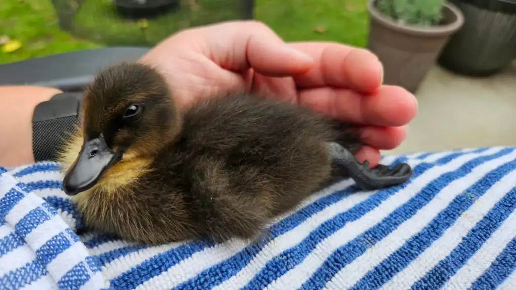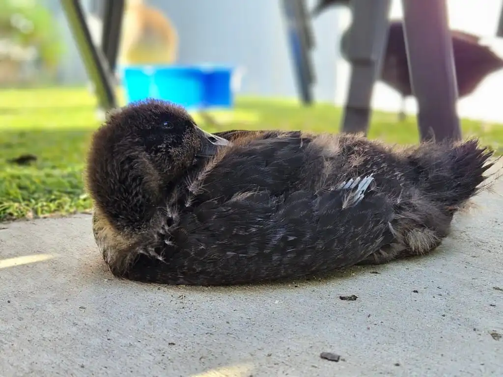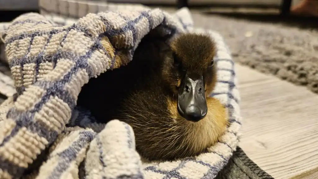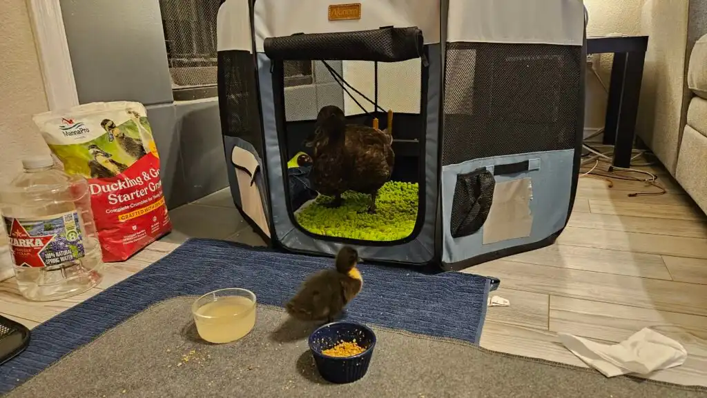 From the moment I was in her hands, I felt safe. I snuggled right in. Mom and Dad took me in without hesitation and set up a cozy brooder in a playpen with a heat plate to keep me warm. They gave me duckling feed, soft bedding, and more love than I could’ve ever imagined.