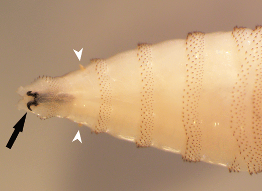 Official identification of screwworm larvae requires expertise. Larval identification is based largely on internal anatomical features, including the presence or absence of dual internal breathing tubes. Confirmation of species identity can only be made by a trained professional using proper diagnostic methods.