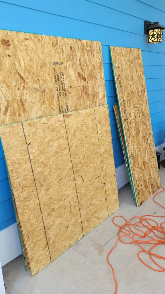 - Cut the opening for the windows and the door into the plywood.