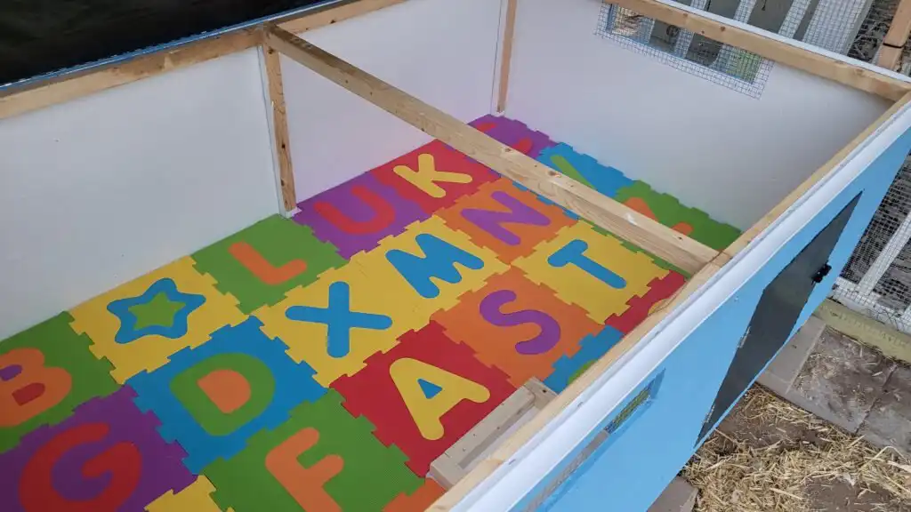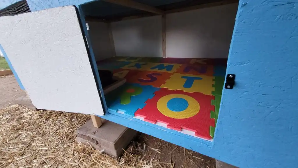 We have also added foam mats to the floor to provide a soft ground for the ducks and help with insulation.