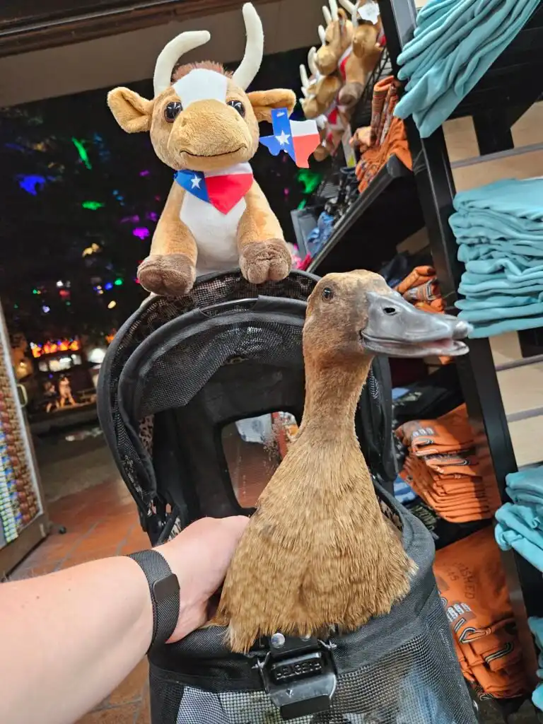 In fact, we’ve already gone on another adventure with Krümel since this road trip. It wasn’t as long, a three-day getaway to San Antonio, but it came with its own highlights. We visited the River Walk and the Alamo, strolled the scenic pathways, and once again brought our duck along for the journey. She rode in her stroller, enjoyed the sights and sounds, and continued to prove just how adaptable and lovable ducks can be when given the chance.